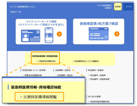 ② URL・二次元バーコードを取得する ・資格確認端末のオンライン資格確認等システムを開きます。 [メニュー]にある《マイナ在宅受付web管理》から《医療機関等別URL取得・変更》をクリックします。 クリックすると、「マイナ在宅受付Web」のURL・二次元バーコードを生成します。 ・表示されたURLをコピー、または二次元バーコードをダウンロードして、ご利用ください。